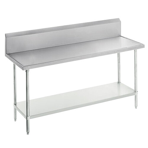 This Advance Tabco VKG-363 Spec Line work table features a full length, 10" high backsplash to give your walls the ultimate protection against splashes, splatters, and spills.