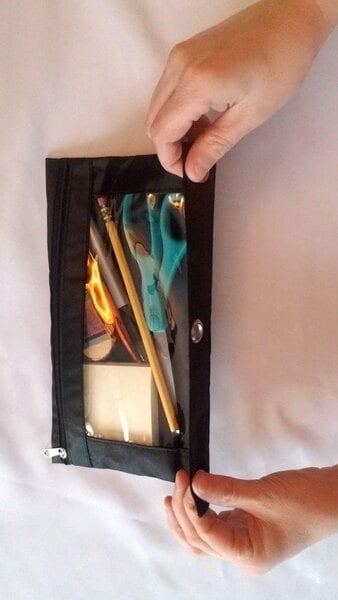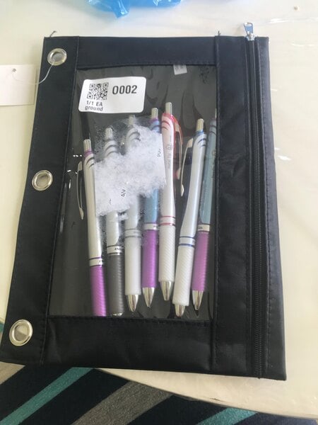 This black binder pencil pouch is very convenient as it has the three rings on the side to allow you to store it in a binder.