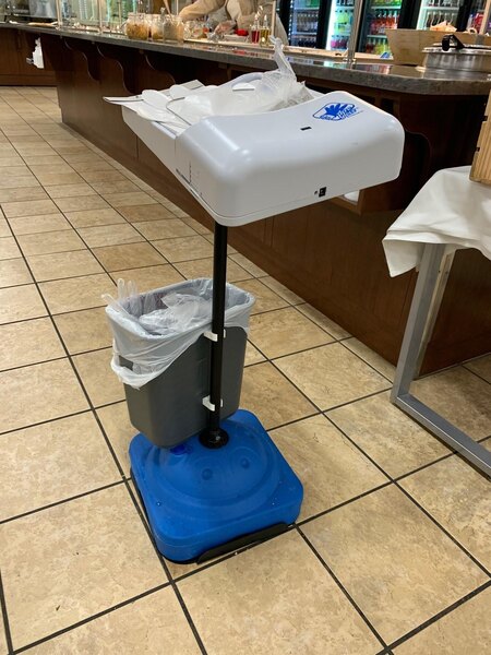 This stand, along with the glove dispenser it is made for, shows customers and employees that you take sanitation seriously. This stand is adjustable to accommodate different heights.