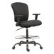 Provide all-day comfort for employees in your warehouse or architectural office with this Alera ALEMT4610 Mota black big & tall fabric office stool with adjustable arms, chrome foot ring, and black swivel steel base! Specially designed to accommodate large employees, this chair's generously-cushioned back and seat ensure exceptional comfort for hours on end. Its soft-padded arms are adjustable for optimal positioning, and its waterfall seat edge reduces pressure points at the back of knees, helping to prevent fatigue. Plus, it boasts an integrated foot ring for leg support while sitting.
