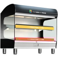 This particular heated display case is built for immediate access, featuring an open air, reach-in design. A backlit merchandising panel is built into the top of the unit too, helping to attract customers to the display (graphics sold separately). The bottom front of the unit is enclosed by an access panel for easy maintenance; it latches shut to prevent damage or tampering. A set of 4" legs raise the unit from the countertop to simplify and expedite cleaning. The unit requires a 230V electrical connection for operation.