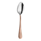 Add a stylish flair to your table settings with this Amefa Sierra 9 1/4" 18/10 stainless steel extra heavy weight table knife with copper handle! Featuring a finely hammered PVD copper handle, this knife offers an eye-catching presentation that is sure to impress your guests. Additionally, the rounded edges and high-gloss mirror finish add a refined elegance to any tabletop setting. Use this knife when serving cuts of tender meats and vegetables for a sophisticated and reliable service.