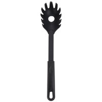 Easily scoop out al dente rotini noodles from the pot or sweet and tangy fruit salad from the bowl with this American Metalcraft 131PE stainless steel solid spoon. Made of 2 mm.-thick stainless steel, this product is sturdy and reliable. 12 3/4" long, this spoon gives you plenty of room, eliminating any fear of burns. The perforated feature saves your dishes from getting too waterlogged or soggy. It's also easy to clean! The black, bakelite handle promises to provide a safe and confident grip, allowing you to cook or serve your food easily and efficiently.
