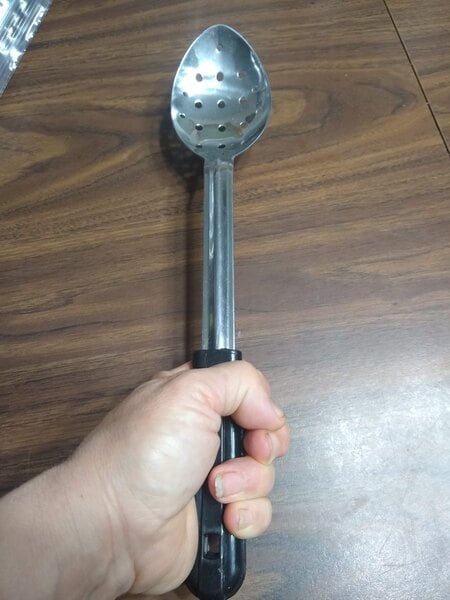 Great spoon, does what it needs to do. Its a perfect, versatile length and pretty easy to clean. If you need a slotted stainless steel spoon, you can't go wrong with this American Metalcraft.