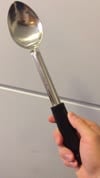 These spoons are great for catering food. The slotted part allows for juices to drain from food. The rubber end of the spoon is great and doesn’t get too hot.
