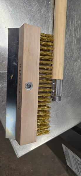 This is a wonderful Pizza oven brush. We use it in our deck ovens. The long handle is great for easily reaching the back. The scraper does a really good job of pulling of the excess debris. It is not overly heavy or awkward to use.