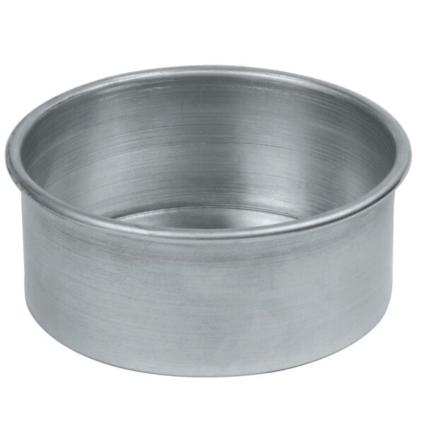 Consistently baking beautiful, flawless cakes or delicious deep dish pizzas can be difficult, but it doesn't have to be! With this American Metalcraft 3807 7" x 3" round aluminum cake pan, dessert or dinner entrees will always come out evenly baked, uniform, and ready for your creative touch each and every time. Plus, thanks to its durable 14 gauge, 1.5 mm thick aluminum construction, the item is perfect for any busy bakery or bustling commercial establishment.