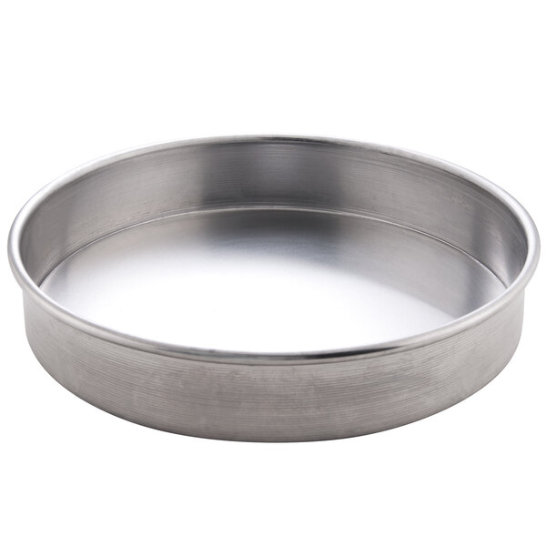 Bake a delicious Chicago-style pizza in this American Metalcraft A80092 9" x 2" straight sided deep dish pizza / cake pan! Made from durable, 18 gauge aluminum, this pan will cook your topping-loaded pizzas quickly and evenly. This standard weight aluminum heats quickly and distributes heat evenly. It offers great results at an even better price.