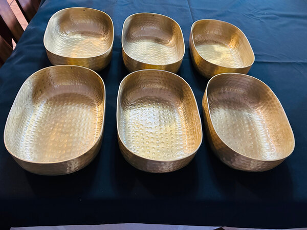 Combining contemporary materials and old world styling, this American Metalcraft ABHB69 48 oz. black hammered aluminum oval bowl is perfect for serving a variety of signature entrees and sides. Featuring a unique oval shape and a durable aluminum construction, this bowl is sure to stand up to the rigors of daily use in busy commercial restaurants and cafes. Its attractive individually hammered design delivers an impression of authentic craftsmanship, and you'll also benefit from its practical function of hiding surface imperfections like dents and fingerprints.