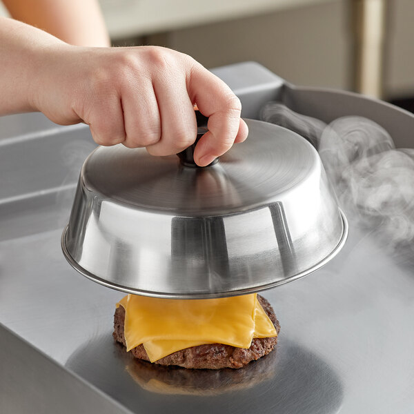 Evenly heat foods and reduce cook times with this American Metalcraft BA640S dome basting cover. Perfect for your grill, griddle, or stovetop, use this cover to quickly and easily melt cheese on your juicy burgers or Philly cheesesteaks, or to steam vegetables to perfection. It will help keep foods moist and warm prior to serving, as well as prevent messy grease splatters from getting on your grill or stovetop, making it easier to clean and maintain your kitchen equipment.