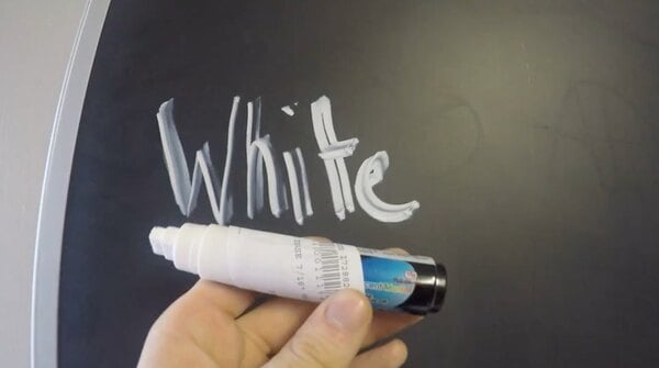 Bright and bold whit chalk marker. I love that there is no power mess and your writing stands out so brightly on the menu board.