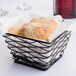 Ships free withThis American Metalcraft BNRB64B 6" square basket combines an eye-catching black metal finish with 2-in-1 versatility! Metal wire is formed and twisted to look like a bird's nest while also looking elegant for your tabletop. Use the 6" birdnest basket to serve appetizers, sides, or even dessert pastries. The 6" chrome basket is a great way to serve burgers and fries, or sandwiches and chips in your sandwich shop or pizzeria.