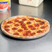 The American Metalcraft CAR14SPHC 14" super perforated cutter pizza pan has an unfinished top edge that can cut dough, which allows you to roll out the dough over the pan with a rolling pin for fast, consistent results. This super perforated cutter pizza pan contains (292) 3/8" holes that allow the bottom of the pizza to cook fast and provide a mouth-watering, golden crust. The perforated bottom also allows finished pizzas to stay fresh longer by allowing moisture to escape. Thanks to the dark coloring of the hard coat anodized aluminum finish, this pan heats up quicker and gets hotter than typical aluminum pans for a faster baking time. Customers will love the quick service and you'll make a crispy, evenly baked pizza every time!
