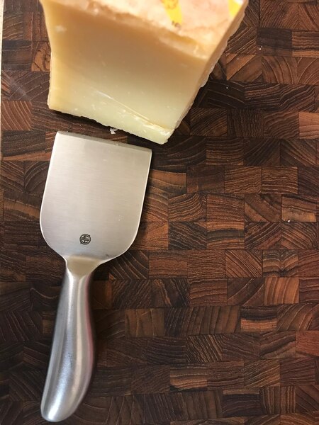 We have used this stainless steel cheese spade for quite some time now. It works effectively on hard cheese to shave off very thin curls from the block. We like it very much!