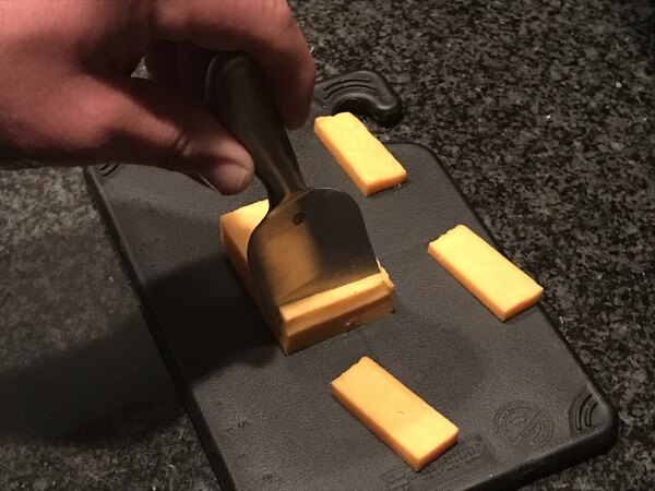 I use this American Metalcraft Evolution five and one-quarter inch stainless steel hard cheese spade on a regular basis. It works well and creates clean slices without crumbling the block. I would order again for the price. I would highly recommend.