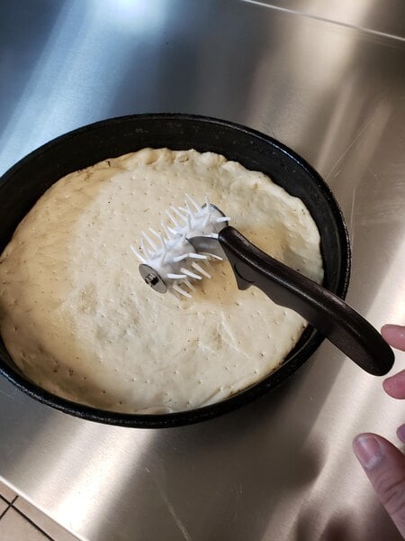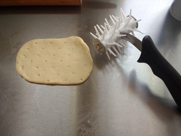 The American Metalcraft docker works very well to prevent air pocket by piercing the dough and this docker cost a great deal less than other dockers. We like that the piercing pins are made of plastic so that using the docker does not scratch our counter-tops. This docker is a great buy and I would purchase it again!!!