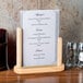 Increase sales without sacrificing style, with this American Metalcraft 6" x 9" natural wood-finish table top board. Its sleek, contemporary design offers a modern twist to traditional sign boards, with a convenient double-sided blackboard included.