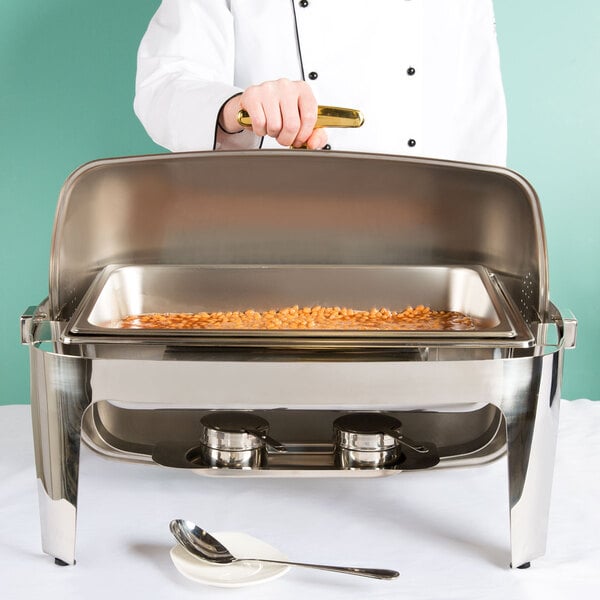This American Metalcraft GOLDAGRT2 Adagio chafer is designed to help you serve your guests and helps customers serve themselves with ultimate ease-of-use! Perfect for any buffet or catering event, it will bring elegance to all your signature dishes with its stainless steel finish and gold handle!