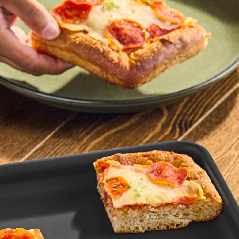 "This pan is perfect for Sicilian style pizzas or for making different types of focaccia bread. It's a great size and results in crispy edges."
