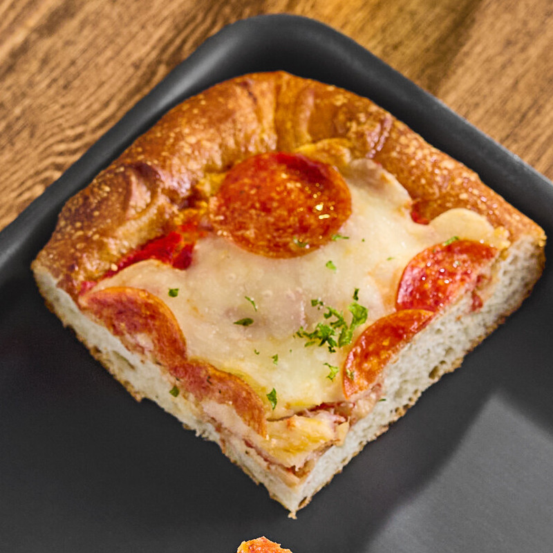 American Metalcraft Hard coat square pizza pan is super sturdy, strong, and light! It's hard coated for easy cleaning and maintenance. We use it for baking Sicilian Pizza!