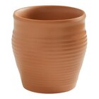 This pot is an attractive alternative to traditional stoneware that is perfectly suited for modern settings and menus. The terracotta color is earthy and subtle. The 4 oz. capacity and distinctive shape of this pot are great for a creative way to serve french fries or even place straws or flowers at your table. Pair this pot with other products from the Marra line to create a cohesive, rustic tabletop display (sold separately).