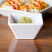 This American Metalcraft MELSC20 2.4 oz. square sauce cup is the perfect complement to your table setting! Whether you're serving marinara sauce for mozzarella sticks, dressing for salad, condiments for dipping, small sides, appetizers or other tasty tidbits, this cup will create a playful presentation for your finger dipping concoctions! Its square shape gives this sauce cup a modern and chic edge, while its melamine construction gives it a glossy, high-end appearance, and lasting durability! Use it for serving up individual dessert portions, and enhance the overall dining experience for your guests. Also, pair it with a sauce cup stand for a bold new look!