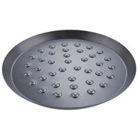 The American Metalcraft NCAR19HC 19" CAR hard coat anodized pizza pan with nibs has an unfinished top edge that can cut dough, which allows you to roll out the dough over the pan with a rolling pin for fast, consistent results. This cutter pizza pan contains nibs which are approximately 5/8" in diameter and raise the pizza about 1/8" above the surface allowing moisture to escape to provide a mouth-watering, crispy crust. Thanks to the dark coloring of the hard coat anodized aluminum finish, this pan heats up quicker and gets hotter than typical aluminum pans for a faster baking time. Customers will love the quick service and you'll make a crispy, evenly baked pizza every time!