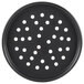 The base of this perforated pan contains (57) 3/8" holes, which allow the bottom of the pizza to cook faster while yielding a crispy, golden crust time after time. Such a feature also keeps finished pizza fresh longer by allowing moisture to escape. This pan is easy to clean as well, owing to its one-piece construction. Whether you use it to bake specialty pizzas with adventurous toppings or traditional cheese, this item will bring quality at an economical cost, making it an essential addition to any pizzeria, restaurant, or buffet.