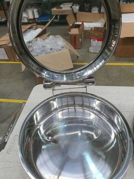 Perfect for buffets, this 7 qt stainless steel chafer keeps food warm and stylish. Its induction-ready design is a game changer!