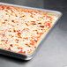 This pan is tough and takes a slicing and a beating. We prepare our square cheesy bread in this deep pan that has room for plenty of cheese!