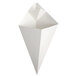Ideal for serving french fries, onion rings, chicken nuggets, or popcorn, this cardboard cone will display your food in a fun fashion! It features a fold out pocket for condiments, pre-folded design for easy assembly, and can fit into a fry cone holder to enhance the overall modern atmosphere of your restaurant, pub, gourmet food truck, or outdoor eating venue.