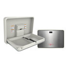 Designed for convenience and safety, this baby changing station features a handle cavity on the door face and it can also be accessed from any location on the door for hassle-free, one-handed opening. It’s made with a damped gas spring that makes it operable with less than 5 lb. of force, with no pinching, tight grasping, or twisting of the wrist required. The unit includes a towel / bed liner dispenser (towels and liners sold separately) on the interior back wall that offers the option for a hygienic barrier between the child and the changing table. The dispenser features a lid to keep the contents sanitary, and it's easy to access and load. The changing station is also furnished with interior instructions and graphics that show how to easily and properly operate the unit. This item is tested to ASTM F2285-04 and F-238 standards for a static load with a weight up to 250 lb., with minimal deflection, and it’s compliant with G-21, G-22, ANSI Z535, ANSI 117.1, EN 12221-1, and EN 12221-2 standards. To save space, this item surface-mounts securely to the wall with included hardware.