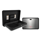 Equip your restroom for your tiniest guests with this American Specialties, Inc. horizontal surface-mounted baby changing station! This baby changing station is made with a durable matte black satin-finished 20 gauge type 304 stainless steel front panel on the door and a matte black, fabricated, fungus- and bacteria-resistant HDPE plastic interior and changing surface. It features a large 50 lb. capacity designed to support infants up to 3 1/2 years old, and a platform with a cradle-shaped bed to protect the child from rolling out. For added safety, this item includes an adjustable, vinyl-coated safety strap with a Sure-Lock latch that resists opening until released using opposing finger pressure by the caretaker. For the benefit of the caretaker, the unit also includes 1 integral, heavy-duty bag hook to hang bags or purses so they’re out of the way and off the floor.