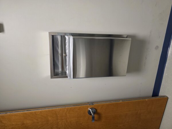 This surface-mounted receptacle securely mounts onto the wall to save space while remaining easy to access. A stainless steel mounting collar is included for convenient installation. This unit includes a tumbler lock to securely lock the receptacle and cabinet in place. To prevent unauthorized waste removal, the included key is required to open the cabinet for servicing.