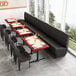 Enhance the aesthetic and functionality of your dining space with the American Tables & Seating William 45 1/2" long black upholstered single booth with button tufted back and walnut finishes. Crafted with a sturdy hardwood frame, this single booth is built to last, ensuring durability and longevity in your establishment. The classic black color effortlessly complements any decor style, adding a touch of sophistication to your space.
