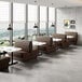 Enhance the aesthetic and functionality of your dining space with the American Tables & Seating William 45 1/2" long brown upholstered double booth with button tufted back and walnut finishes. Crafted with a sturdy hardwood frame, this double booth is built to last, ensuring durability and longevity in your establishment. The classic brown color effortlessly complements any decor style, adding a touch of sophistication to your space.