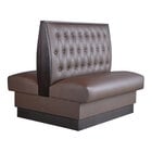 Designed for comfort and convenience, the vinyl upholstery is both comfortable for your guests and easy to clean for your staff. The plain seat design eliminates areas where food can drop, making cleaning a breeze. This double booth features a high-quality elm wood top and end caps, along with a walnut laminate kickplate and tufted seat back, adding a touch of elegance to your seating area. Upgrade your dining space with this stylish and practical seating option from American Tables & Seating.