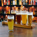 Offer convenience and class with this Anchor Hocking 11938 wooden flight serving paddle. Crafted of a single piece of wood that features a lovely acacia finish, this paddle is perfect for adding a stylish touch to your guest's tasting experience. Whether you are serving up samples of your popular microbrews, in-house favorites, or seasonal specialties, it's designed with your bar, brewery, or restaurant in mind. A thick handle provides an easy grip for simple transportation from bar to table. Four individual slots carved into the larger body help to ensure minimal product displacement during transportation.