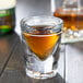 With its crystal clear construction, your shots of tequila or whiskey will shine as the center of attention. The distinct style of this shot glass is also sure to add an elegant touch to your tabletop. It's the perfect piece of glassware to keep on hand in your bar, pub, or restaurant.