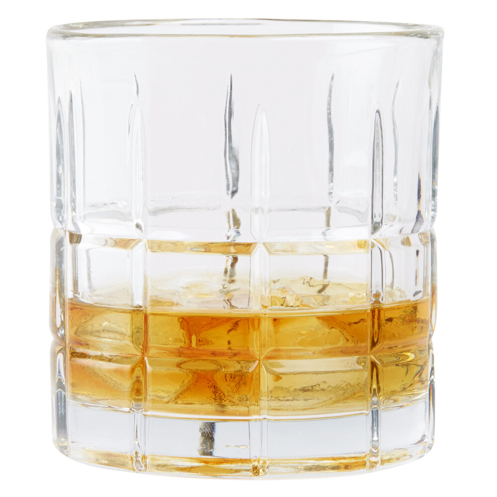 Additionally, the distinct checkerboard pattern offers a unique beverage experience that differs from a beverage served in a traditional rocks glass. Combined with the crystal clear glass construction, this glass showcases your liquor and other drinks attractively, so you can create an aesthetically appealing beverage service for customers.