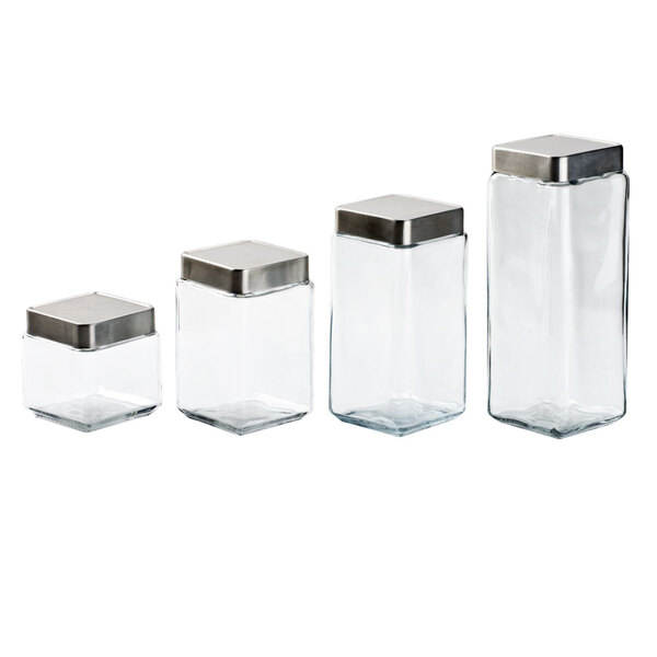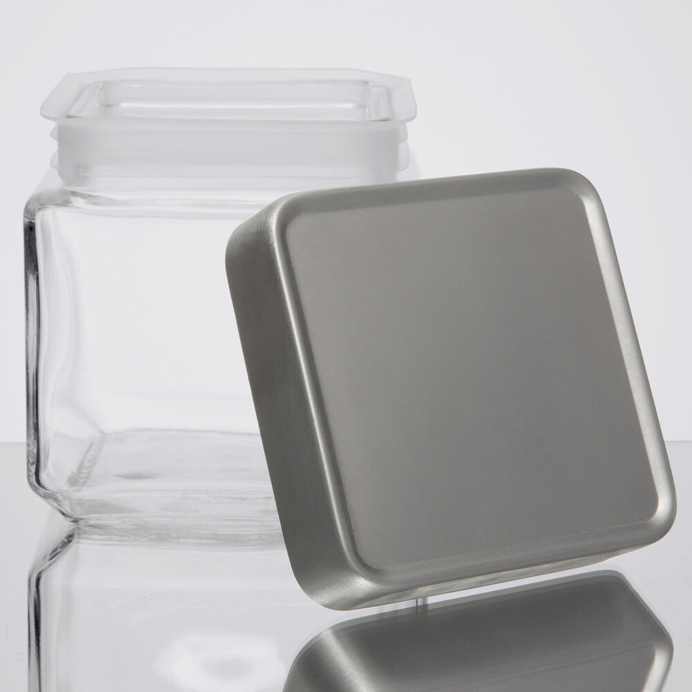 Great product. We used it to store our loose leaf tea in our restaurant. Lids are a great brushed nickle finish and fit perfectly over the jar. The square jar makes it easy to store the teas next to each other and the lids have a tight but easy to remove lid. They are stackable as advertised and appear to be sturdy when stacked "two" high.