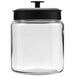 Keep your flour, pasta, coffee grounds, or tea safely stored in your kitchen with this Anchor Hocking 96712AHG17 Montana 96 oz. mini jar! This jar is perfect for use in your restaurant kitchen. It can hold your cooking ingredients so that they are easily accessible. It features a top with a small handle to keep your food safe and for easy accessibility. The black lid is made of durable metal that will last in your establishment.