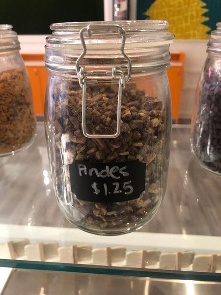 Andes by the bulk is the best thing ever! We use this on our topping buffet and also in our shakes this also is great for decoration on all cakes