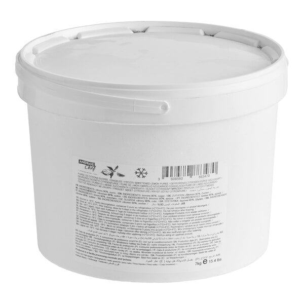 With a wide variety of uses on your menu, this puree is sure to become a go-to ingredient in your establishment! It's great for adding real lemon flavor to frozen desserts like ice cream and sorbets that are sure to be popular on your summer menu. Because it's made with fruit that's carefully selected for its organoleptic qualities, this puree performs well in technical applications like gellified inserts, mousses, fruit pastes, macarons, and chocolate bon bons! Its smooth, light consistency is also great for creating refreshing cocktails or making glazes for desserts. This puree is packaged in a resealable 15.4 lb. tub that will provide an ample supply for your high-volume establishment.