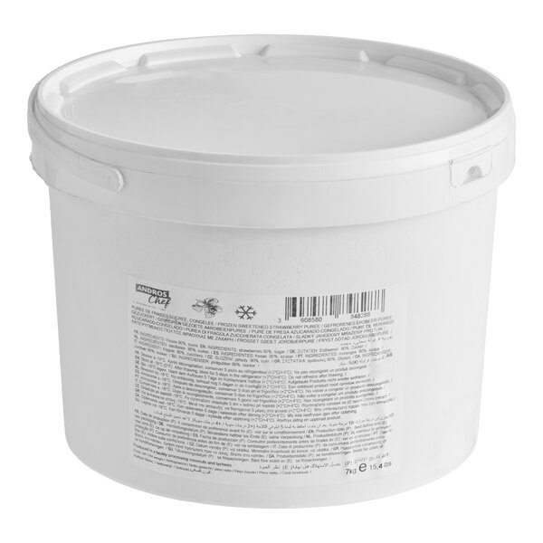 With a wide variety of uses on your menu, this puree is sure to become a go-to ingredient in your establishment! It's great for adding real strawberry flavor to frozen desserts like ice cream and sorbets that are sure to be popular on your summer menu. Because it's made with fruit that's carefully selected for its organoleptic qualities, this puree performs well in technical applications like gellified inserts, mousses, fruit pastes, macarons, and chocolate bon bons! Its smooth, light consistency is also great for creating refreshing cocktails or making glazes for desserts. This puree is packaged in a resealable 15.4 lb. tub that will provide an ample supply for your high-volume establishment.