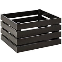 Build buffet and table displays that are versatile and stylish with this APS Superbox full size 21 7/8" x 13 3/4" x 4 1/8" dark acacia wood display crate / housing frame! This display crate is made with sturdy acacia wood and can be used as a crate or as a display base to create displays for your buffet, cafe, food stand, or hotel. It is made for use with full-sized pans or platters and can be used to serve individually packaged snacks, produce, or condiments.