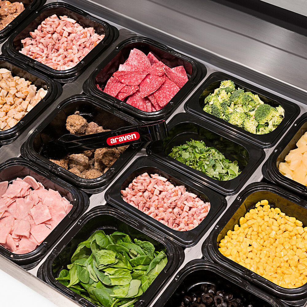 - Great for displaying foods at cold counters or storing ingredients and prepared foods