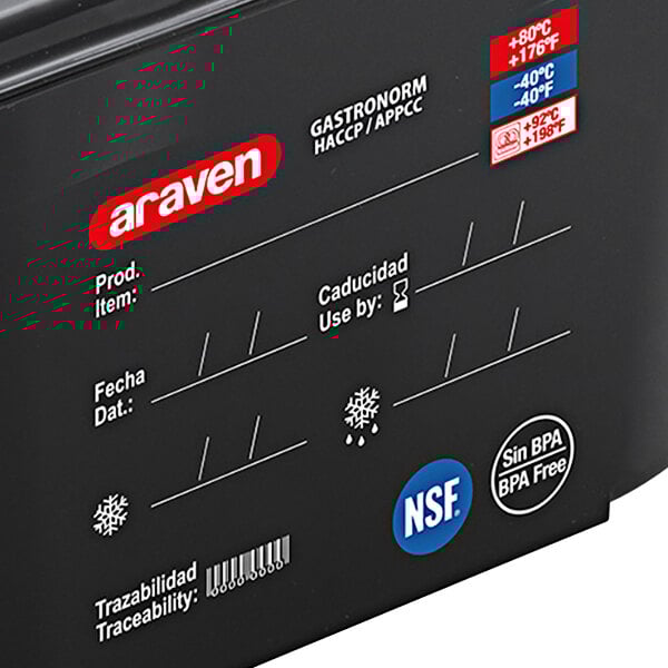 Featuring a molded in, integrated traceability label for proper identification and record keeping, this food pan ensures your ingredients and prepared foods are stored properly to adhere to food safety guidelines. The built-in label helps reduce costs and waste by replacing disposable food labels in your establishment. In addition, your staff will be able to identify contents at a glance and record information on food origins to ensure your kitchen complies with traceability regulations. Plus, the black finish makes this food pan perfect for displaying food at cold counters.