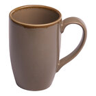 Create an inviting dining atmosphere with this Ariane Splash Beige 10.14 oz. beige tapered porcelain mug! Made from superior high-fired porcelain, this mug is designed to withstand the demands of any rigorous food service environment while maintaining its harmonious appearance. The modern rustic style features tapered sides in an earthy beige tone, offering a handcrafted look for a distinctive presentation. The edge is accented by brown hues, providing an eye-catching visual contrast. Perfect for serving coffee, tea, and hot beverages, this mug complements your extraordinary service for an unforgettable occasion.