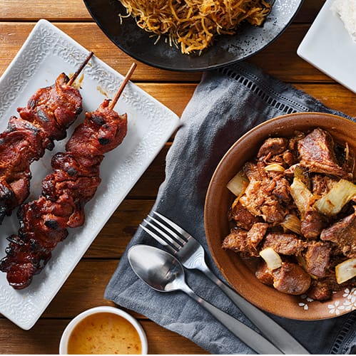 - Toyo Dishes: Adobo, pancit canton, bistek Tagalog, and toyomansi dipping sauce